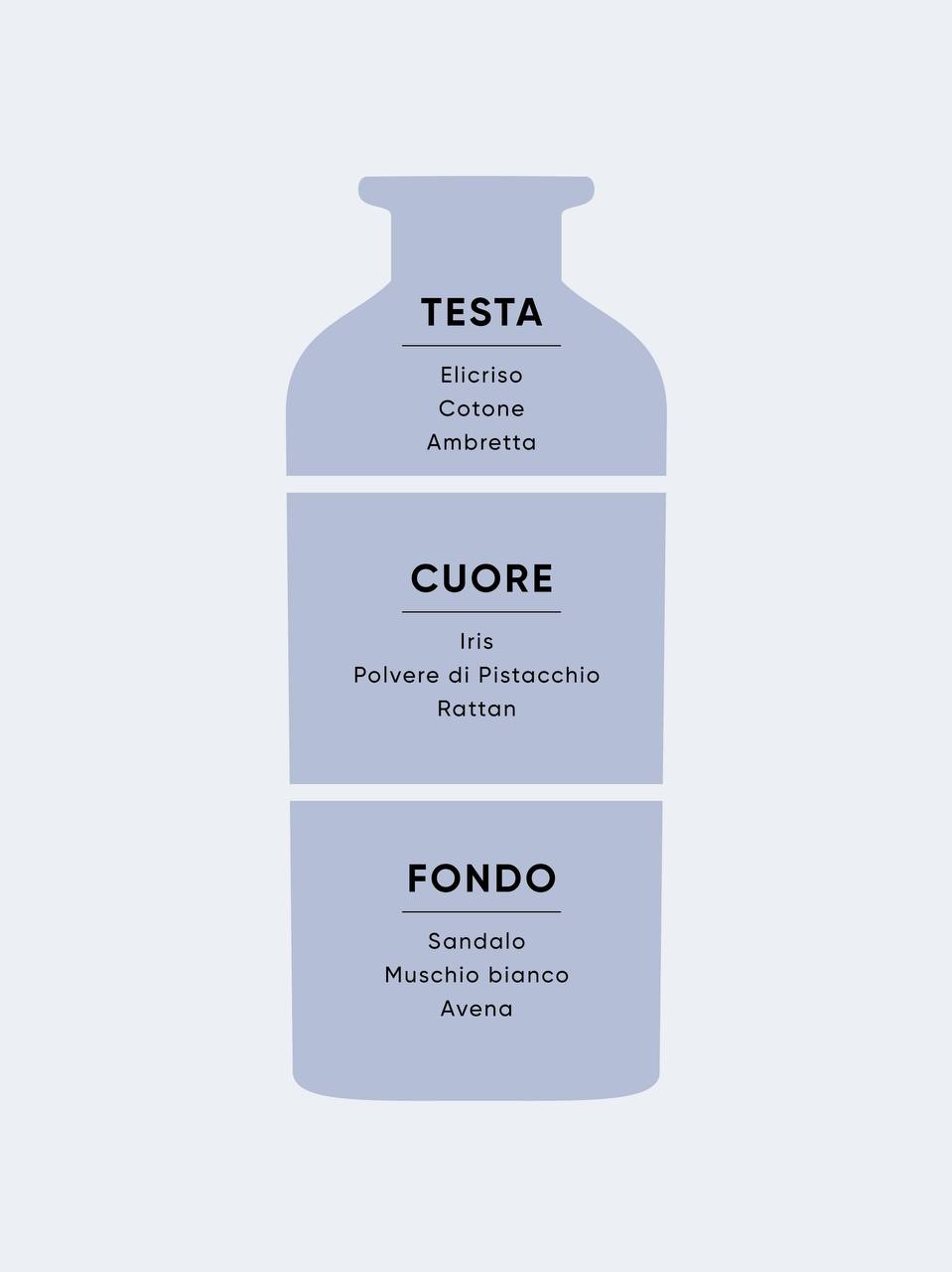 Un profumo ambientale che non è solo un gesto estetico, ma un’esperienza profonda di benessere emotivo. Evoca leggerezza, affetto e lentezza, come una carezza delicata che danza nell’aria. La nota cremosa del sandalo incontra la dolcezza dei muschi bianchi in un'armonia perfetta